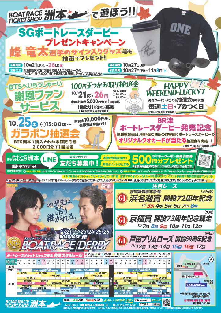 BTS洲本では、ボートレースダービー発売期間多数のイベントを開催。
